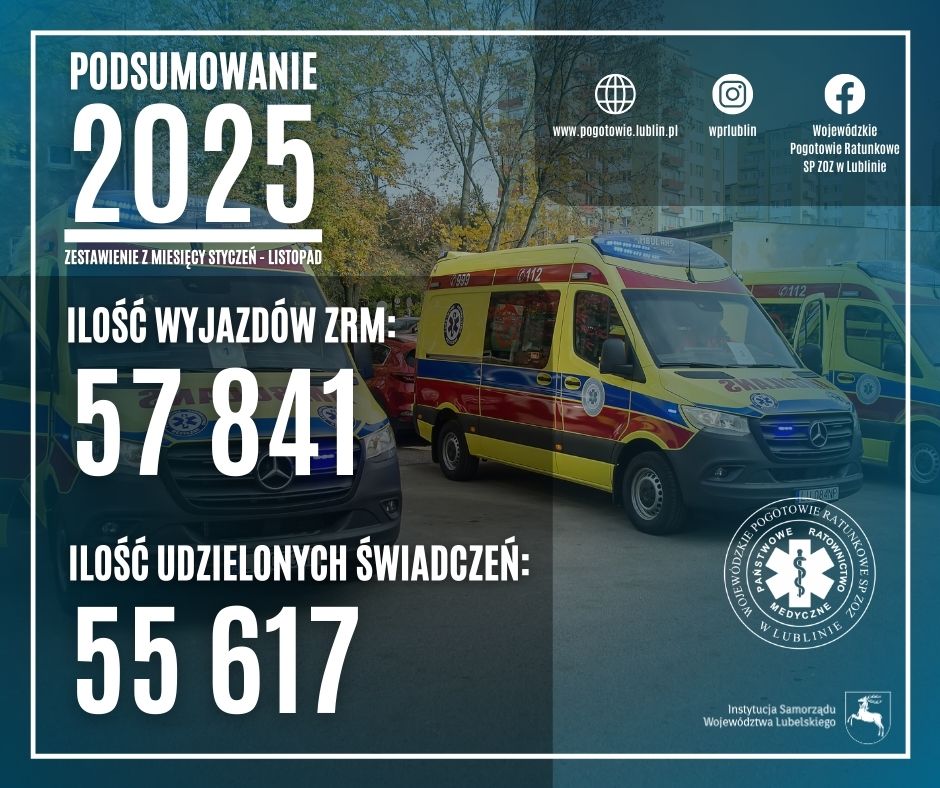 Od stycznia do listopada 2025 r. zespoły Wojewódzkiego Pogotowia Ratunkowego SP ZOZ w Lublinie przeprowadziły:
